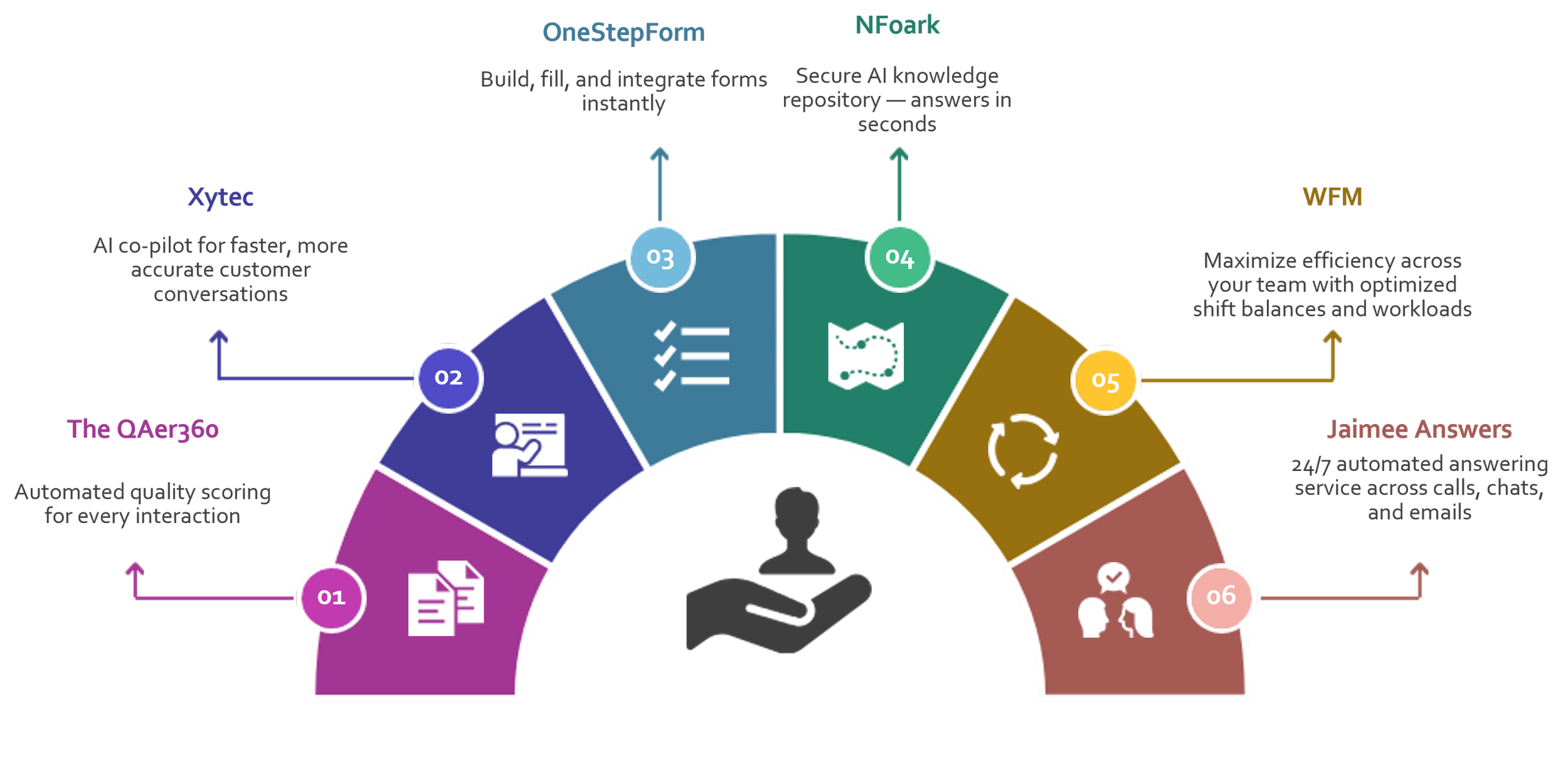 Transform your business with one intelligent AI suite. From customer experience and recruiting to quality assurance and workforce management—everything works seamlessly, in one place.