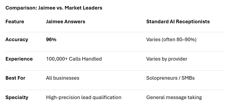 Jaimee Answers - 24/7 automated answering service across calls, chats, and emails.