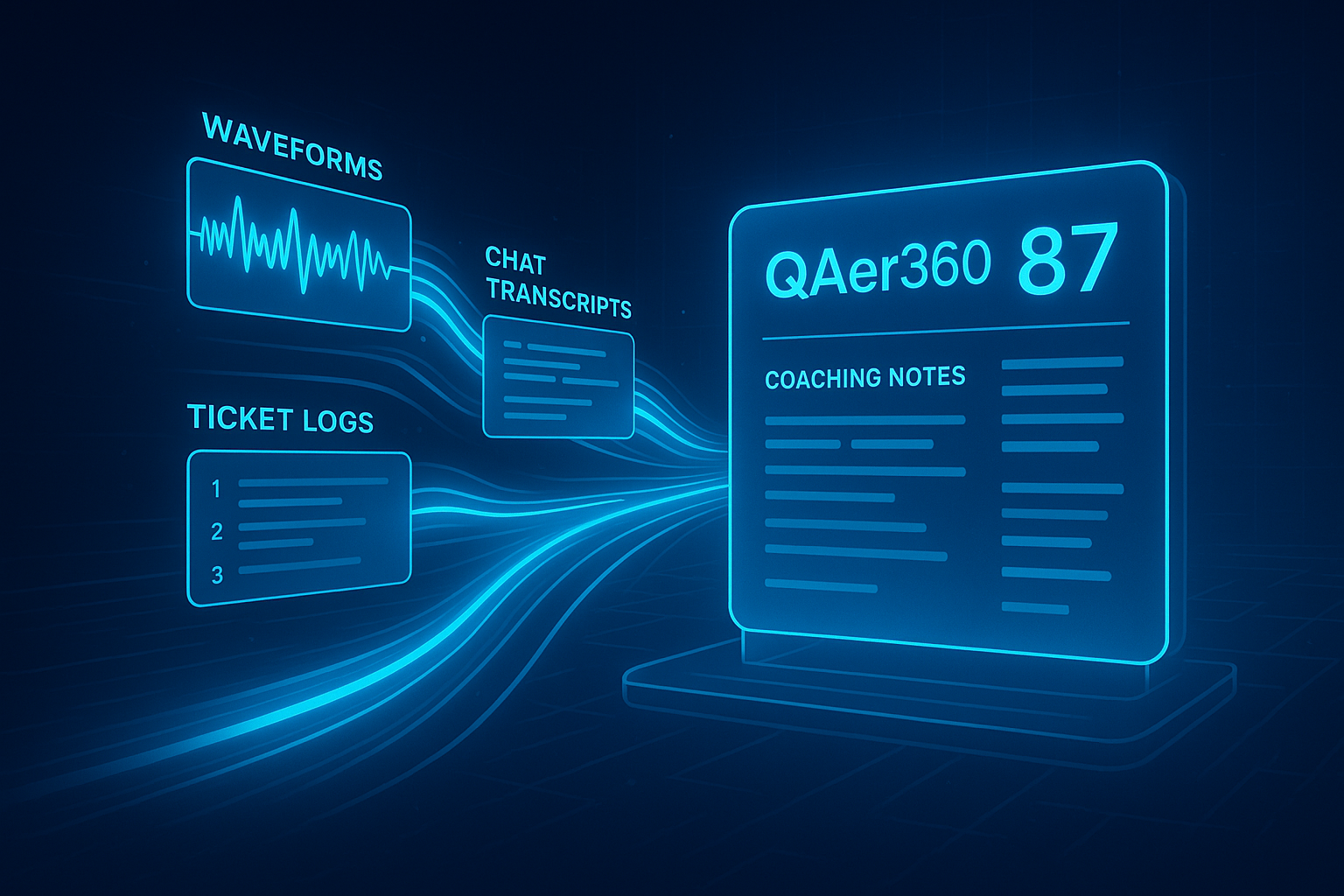 The QAer360 listens, evaluates, and scores every customer interaction against your standards — turning hours of manual review into instant, measurable results.